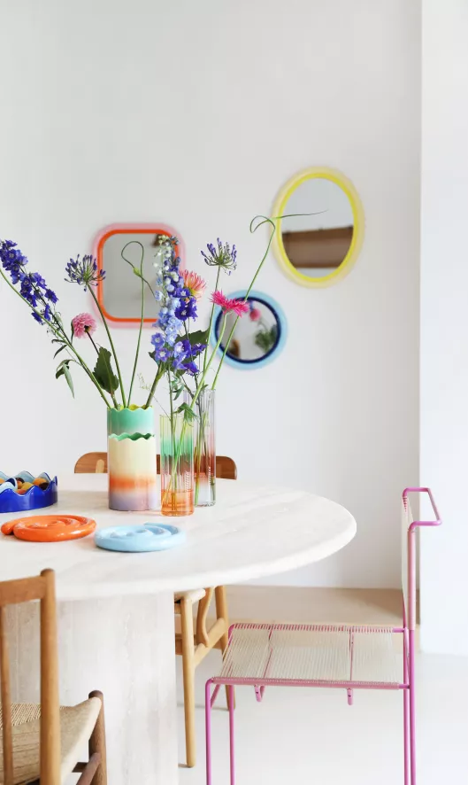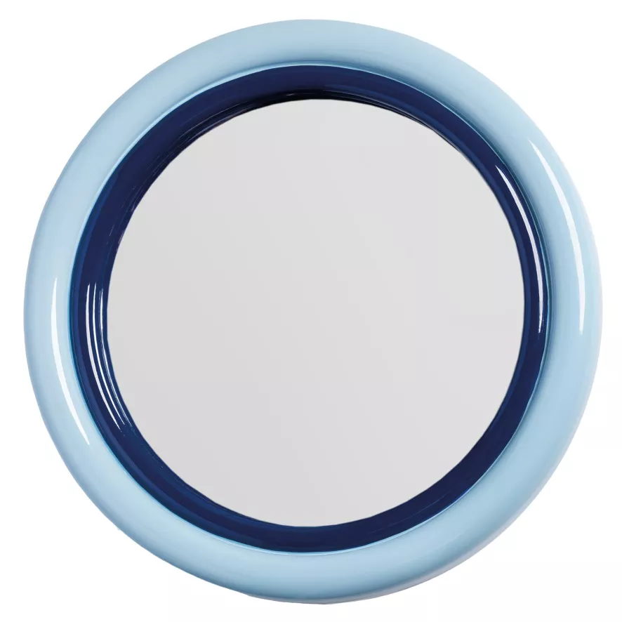 De Sleek spiegel rond blauw van &klevering heeft een diameter van 33 centimeter en een dietpe van 3,5 centimeter. De spiegel is gemaakt van glas en polyresin en weegt 1,08 kilo. &klevering raadt aan de spiegel te reinigen met een vochtige doek.