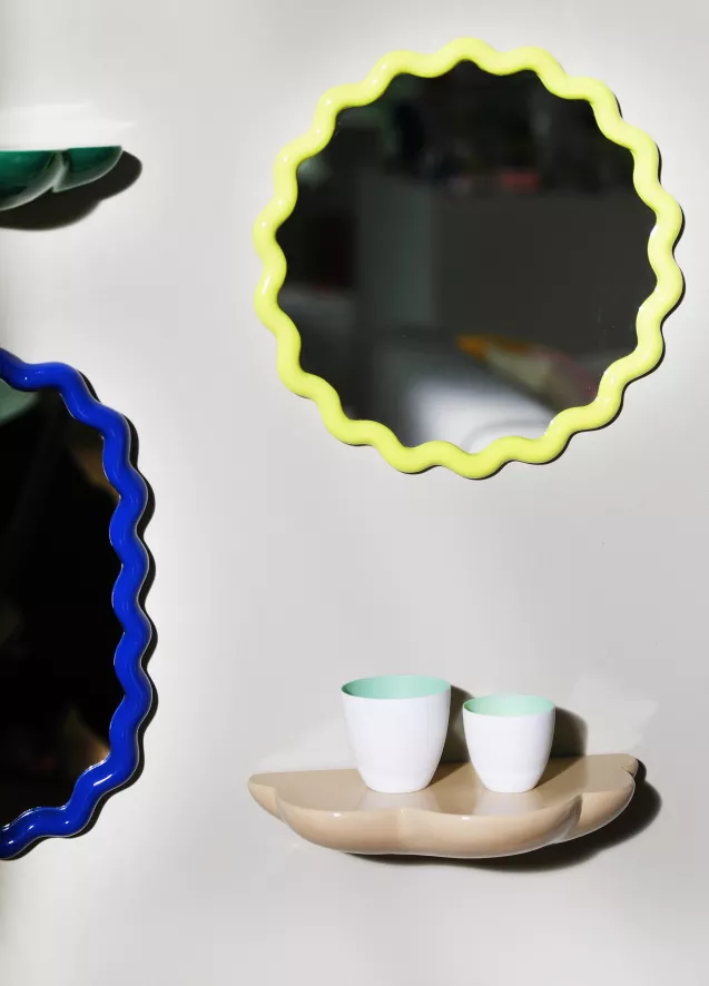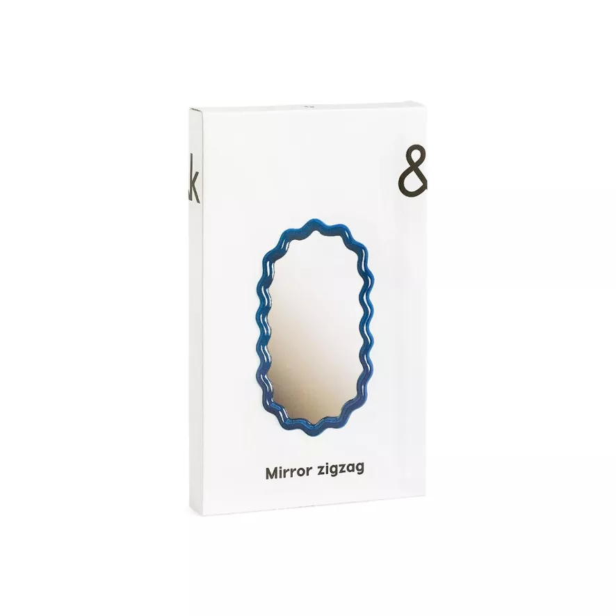 De Zigzag spiegel 40×24 van &klevering heeft een lengte van 40 centimeter, een breedte van 24 centimeter en een dikte van 2 centimeter. De spiegel is gemaakt van glas en de lijst is gemaakt van polyresin in een blauwe kleur. Maak de spiegel schoon met een vochtige doek.