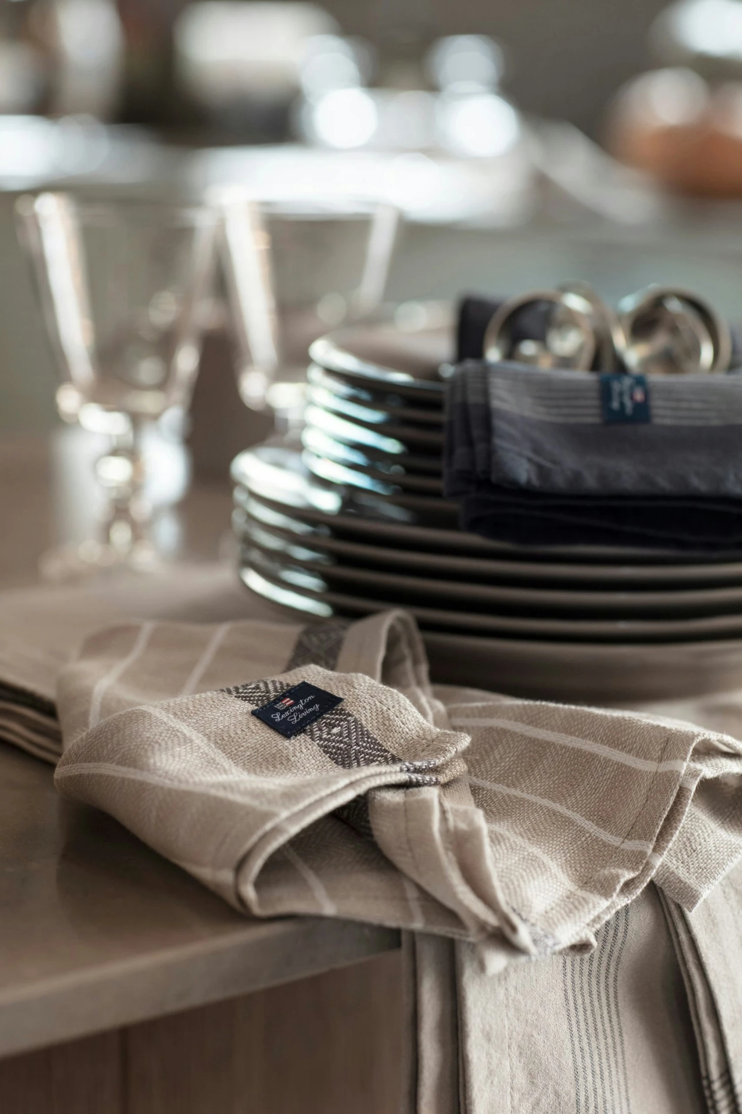 De tafelloper van Lexington heeft een klassiek ontwerp van organisch katoen met een gestreept detail aan de zijkanten en een klein logo langs de korte zijde. Een perfect detail voor de gedekte tafel.