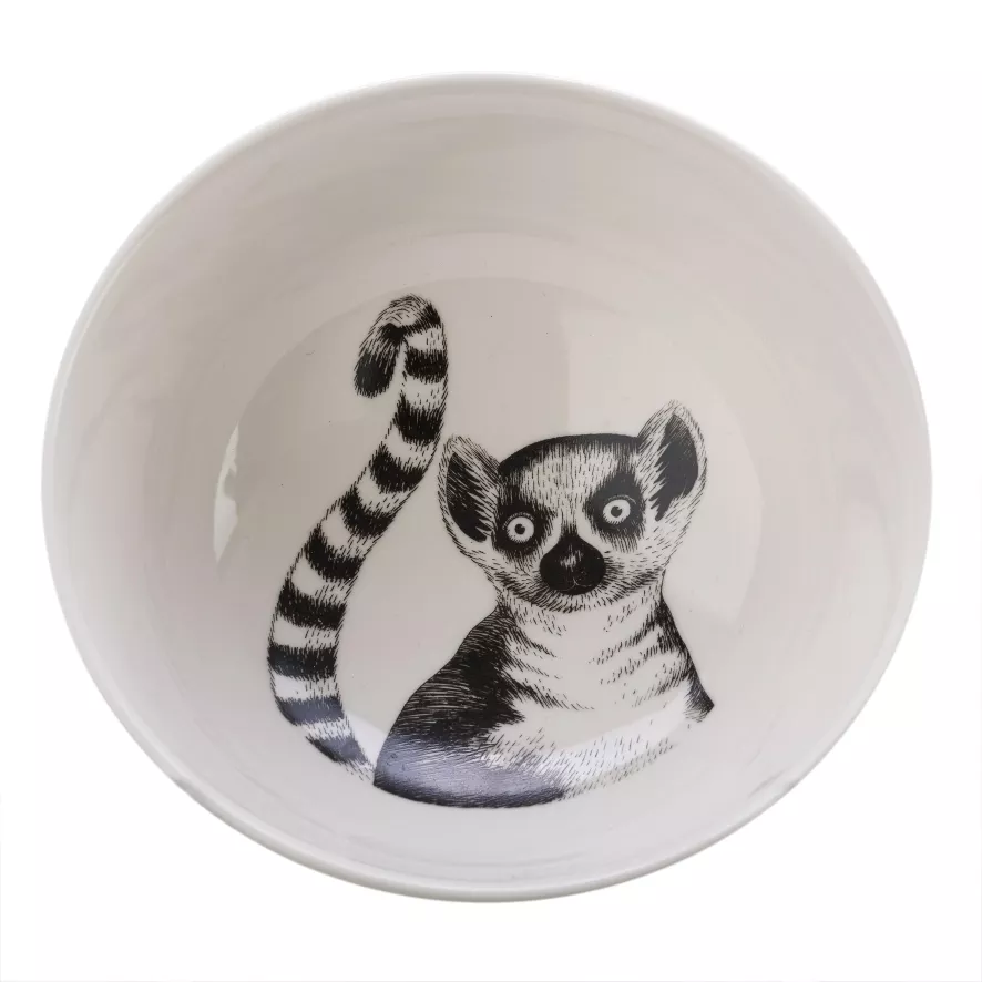 De Animals Snack schaal set van pols potten bestaat uit zes schaaltjes, gemaakt van geglazuurd porselein met zwarte transfer illustraties. De schaaltjes hebben een diameter van 15 centimeter en zijn 7 centimeter hoog. De inhoud van ieder schaaltje bevat 450 milliliter. De schalen zijn vaatwasmachine en magnetron bestendig en de set weegt in totaal 2,2 kilogram.
