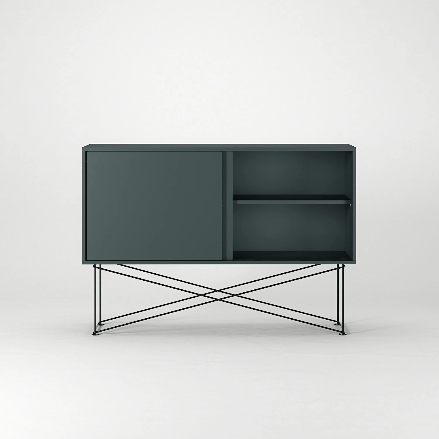 Vogue Sideboard from Decotique. A modern and elegant sideboard of Scandinavian design. With Vogue sideboard you get two features in the same furniture: a practical unloading space and storage. The sideboard stands steady on beautiful legs in brass or a frame stand, available in three different colours. Choose a design with front in brass-colored aluminum for an extra luxurious feel. On the inside hides a movable shelf.